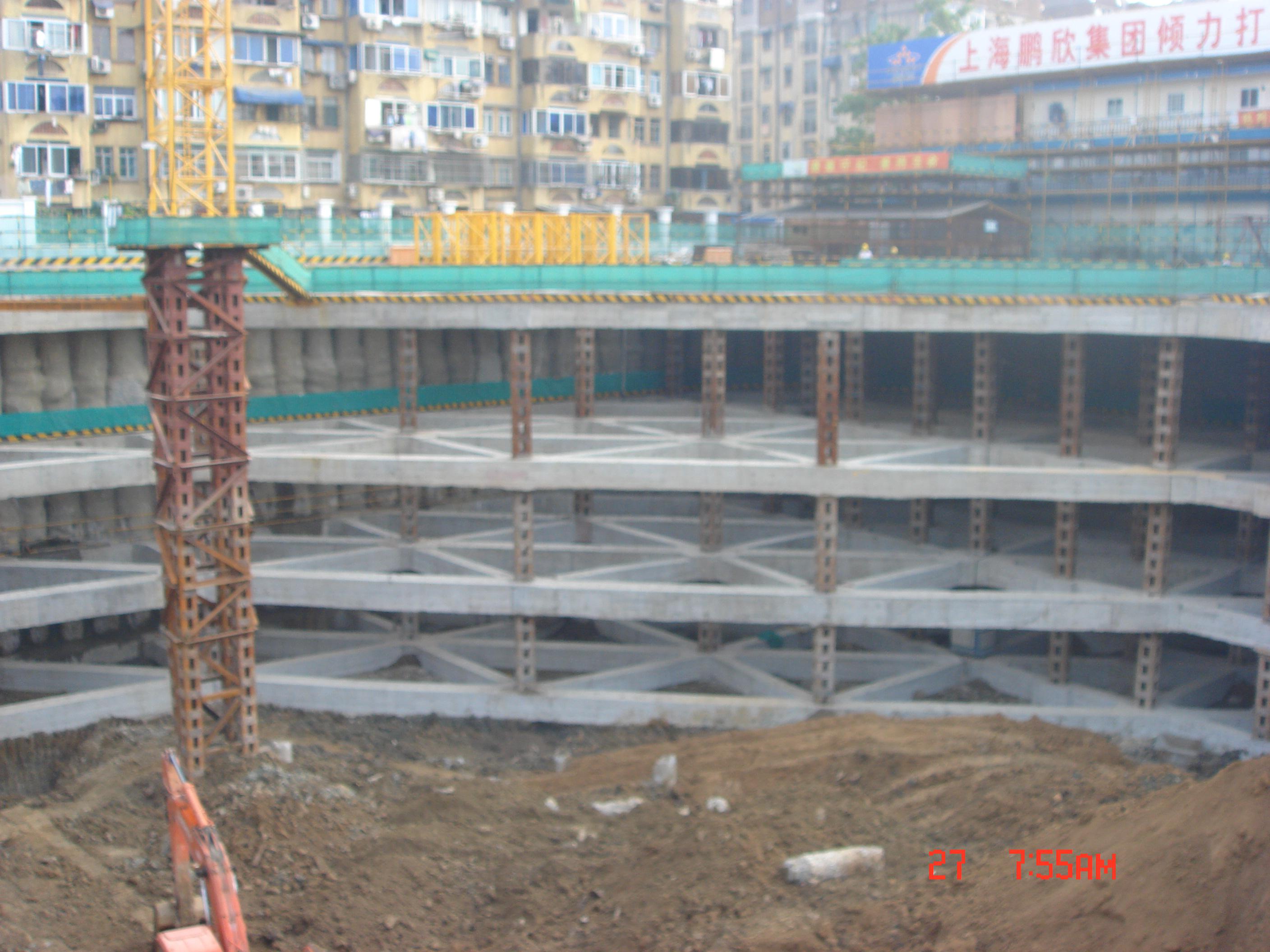 項(xiàng)目位于建康路和中華路交界處東北角,南京外運(yùn)大廈南側(cè)。工程主樓為3幢15~16層,裙樓4~5層,整體設(shè)有4層地下室,基坑南北長(zhǎng)170m,東西寬140m,基坑圍長(zhǎng)608m,開(kāi)挖深度20m。采用鉆孔灌注樁+4層砼支撐的支護(hù)形式,坑外施工三軸深層攪拌樁作為止水帷,基坑支護(hù)結(jié)構(gòu)的安全等級(jí)為"一級(jí)"。南京市優(yōu)秀工程測(cè)繪一等獎(jiǎng),江蘇省城鄉(xiāng)建設(shè)系統(tǒng)優(yōu)秀勘察設(shè)計(jì)二等獎(jiǎng),江蘇省第十二屆優(yōu)秀工程勘察二等獎(jiǎng)。