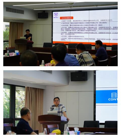 南京南大巖土工程技術有限公司李俊才總經理首先致歡迎詞,歡迎江蘇省地質勘察技術院劉建東院長一行的到來,并逐一介紹我方人員。隨后,張志鋮副總經理對南京南大巖土工程技術有限公司的基本情況做簡單匯報,張鵬院長對南京智慧巖土工程技術研究院有限公司的基本情況做簡單匯報。聽完介紹后,江蘇省地質勘察技術院劉建東書記表示,南大巖土及智慧巖土研究院與地勘院之間有很多業務相關點,希望建立密切、長久及融洽的戰略合作伙伴關系,優勢互補,共同成長,更好地服務新時代。