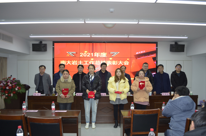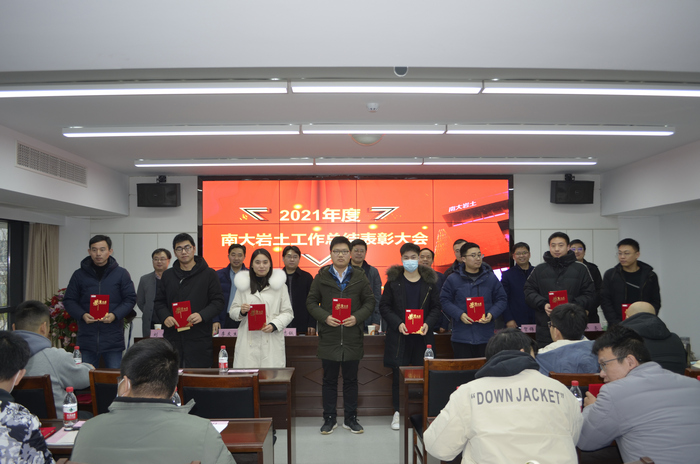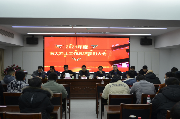 南大巖土于2022年1月22日上午9:00在公司召開了2021年度總結表彰大會。為了減少人員聚集,分設了4個會議室:報告廳2樓、3樓、4樓會議室。公司高層領導李俊才,葉繼權,張志鋮,李友生等出席了會議,大會由公司副總經理張志鋮主持。